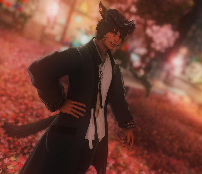 BackstoryNyo is from Underworld and his father is one of several powerful Demon Kings. Nyo is rebellious and does not take interest in ruling and doesn’t want to follow in his footsteps. With his father was so focused on training him for that and his mother being a popular succubus that was never around, he never really understood feelings besides lust or chaos. Nyo was also a disappointment because he is a pacifist and his ideal version of chaos is being a trickster, not the terrible tasks his father would force him to do. His father treated him poorly due to this and eventually he runs away. During his travels alone in Hell he meets someone shady that promises him an escape from his current reality.He accepts blindly without hesitation and winds up in Lakeland with his demonic powers severely weakened as a very small miqo’te with horns. Not knowing how to react or where to go, he wanders around for a bit and becomes a very valuable escort at Eulmore. Nyo feeds on sexual energy and sexual tension. His underworld has a moon cycle and every 3 days Hell’s blood moon sends him into heat where he is extra rambunctious and horned up and it affects him wherever he wanders to. Prior to becoming an escort he traveled around The First completely alone and afraid after his first experience with his curse. He is cursed with corrupted aether and if he sleeps he’ll burst into demonic frenzies and kill. His pacifistic instincts cause bits of him to crystalize and react to the corrupted aether that burns through him if he harms anything or anyone.Unless the blood moon is out, he’s annoying and tired. He has paid willing adventurers gil to restrain him and watch him so he can sleep without harming others, but it’s too expensive to do it as often as he’d like. His curse renders him useless in combat and he only works once every few days to satisfy his blood moon cravings so he’s not very wealthy. He also chugs coffee at pubs to keep himself awake and has ran places dry.His chest and left shoulder are slightly crystalized. It glows when he’s having a demonic reaction to something and indicates how much control he has over himself. He has sharp claws and large fangs and can be very feral at times. He doesn’t know how to express his feelings well at all and gets flustered very easily when trying to. His sleep deprivation causes him to be extremely clumsy as well. When he’s chugging coffee at pubs he’s also scouting for stronger adventurers that could allow him to sleep for the night, or allow him to feed on their sexual energy if there is a blood moon.Thancred paid Nyo a lot at Eulmore, nearly every blood moon for awhile. Eventually Thancred gets the idea to introduce him to Urianger to try to save gil. Urianger agreed reluctantly to have Nyo as a pupil. Nyo is to learn how to convert his corrupted aether into astrologian healing magick because offensive spells would trigger the curse and crystalize him more. Urianger only accepted Nyo because he wants to prevent potential demonic outbursts that could cause a lot of death. Nyo’s a shit student, and he’s not the best healer. It drains him too much. Thancred uses Urianger’s lessons as a way to get out of having to pay Nyo for sex. Thancred has a love for Nyo that he can't understand. Nyo is learning more offensive magicks at the cost of his health.Nyo being a kind-hearted demon, he wants to test his boundaries as an astrologian and usually goes for high rank hunts with other bounty hunters if he can’t find anyone to seduce for gil. He has a small reputation for being a crazy sex demon so some bounty hunters will help him, but only if he puts out. He primarily focuses on illusion/healing magick but has a few cards up his sleeve at the cost of furthering his crystallization.